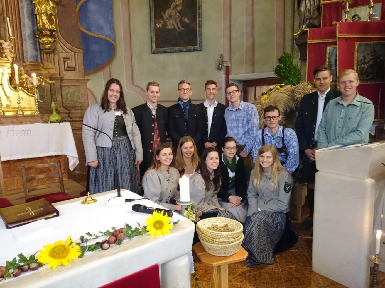Für das diesjährige Erntedankfest haben wir weider die Erntekrone gebunden. Es war eine Hetz und das Ergebnis konnte sich sehen lassen.